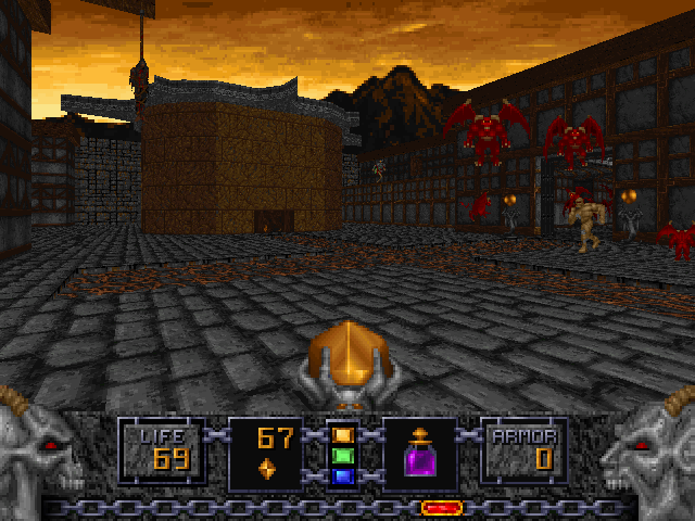 Here is the "99% Complete" version of my Heretic episode, "Wrath of the Titans", which includes revamped editions of all my previous levels plus one never before released. There is a known bug in Chocolate/Crispy based ports due to incorrect HHE support; I recommend you either use Heretic-Plus or one of the advanced ports supported (ZDoom, Doomsday, Eternity).